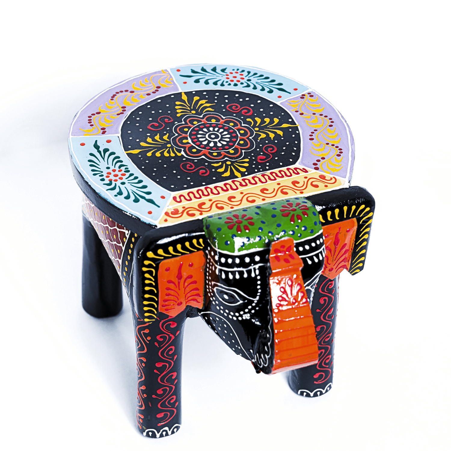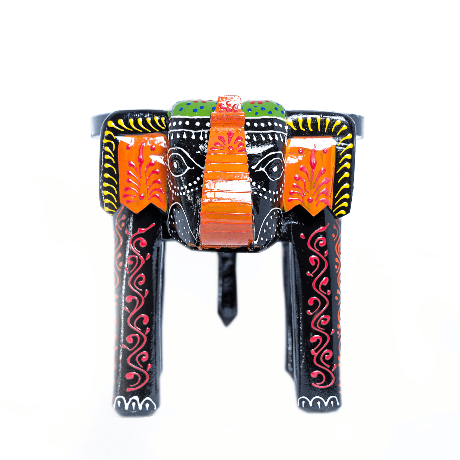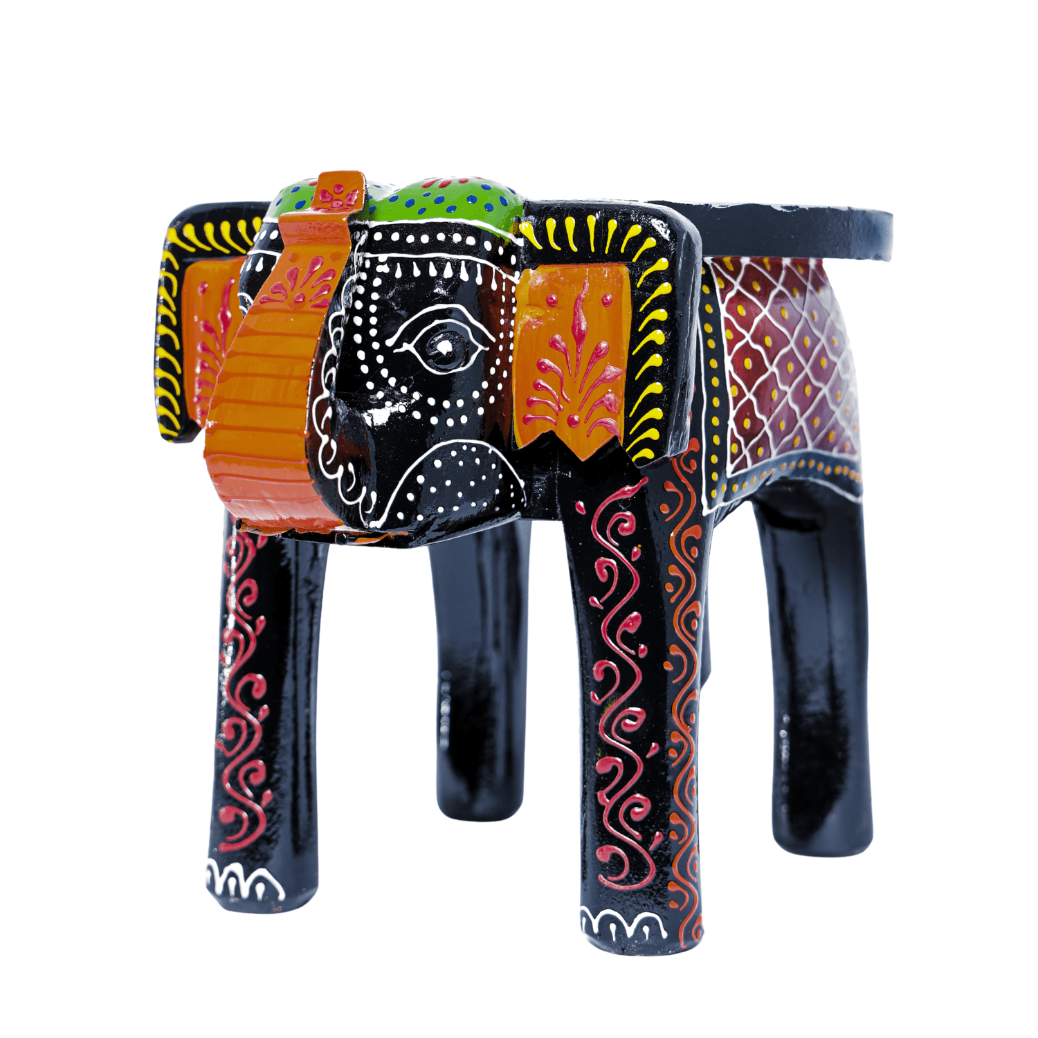 Bring Home the Joy of Colour with the HASTAM Handpainted Multicolour Elephant Stool! Inject a burst of vibrant colour and authentic Indian ethnic charm into your living space with the HASTAM Handpainted Wooden Elephant Stool. This is the perfect accent piece for those who appreciate folk art and unique, eye-catching decor. A CELEBRATION OF FOLK ART The charm of this piece lies in its meticulous hand-painted multicolour design. Set against a classic black base, the bright patterns of orange, blue, and green swirls, dots, and florals make this elephant showpiece truly come alive. It is a miniature celebration of the rich, traditional artistry of India. VERSATILE AND QUIRKY DECOR At a compact 8-inch height, this elephant is functional as well as beautiful. Use it to instantly uplift a dull corner, as a plant stand in your window, a bedside end table, or a decorative accent on a shelf. It’s the ultimate conversation starter and the ideal choice for adding a playful, cultural touch to any room. ARTISAN QUALITY ASSURED When you purchase this stool, you are investing in genuine handcrafted quality. No two pieces are exactly alike, as each is individually painted by skilled artisans. The sturdy wooden construction ensures it is durable enough to serve both decorative and functional purposes for years to come. SPECIFICATIONS: Brand: HASTAM Product: Wooden Elephant Showpiece Stool / Mini Table Height: 8 Inches (20 cm) Colour: Black and Multicolour (Vibrant) Style: Hand-Painted Traditional Indian Art Usage: Decorative Showpiece, Plant Stand, Side Table, Accent Decor Care: Wipe clean with a soft, dry cloth.