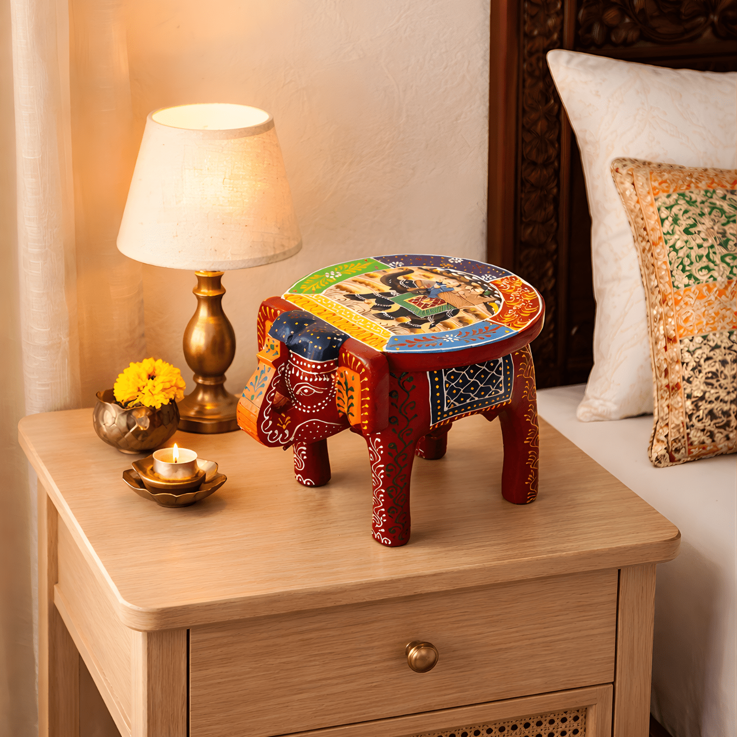 This multipurpose stool is not just furniture — it’s a statement piece that celebrates Indian artistry.